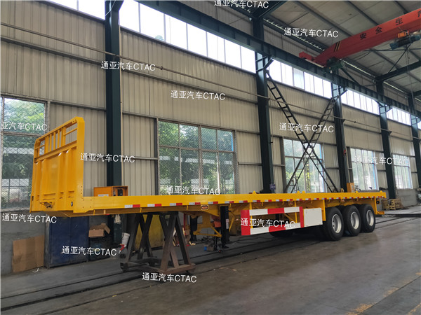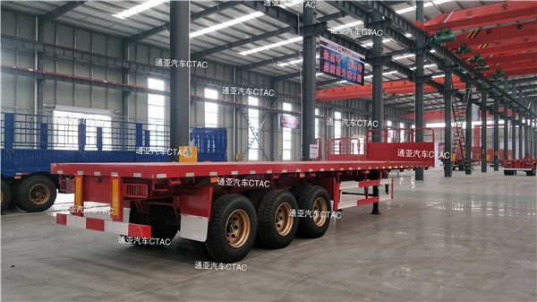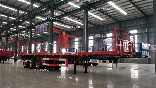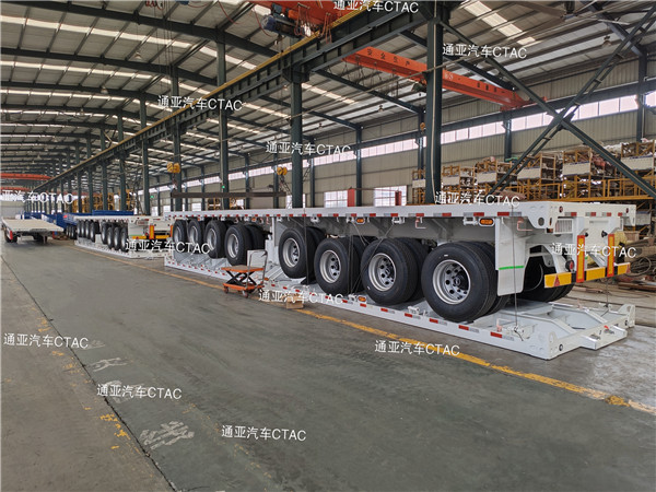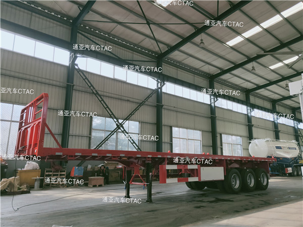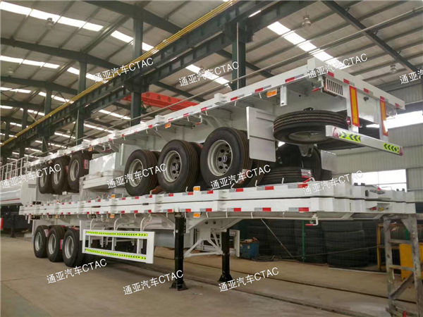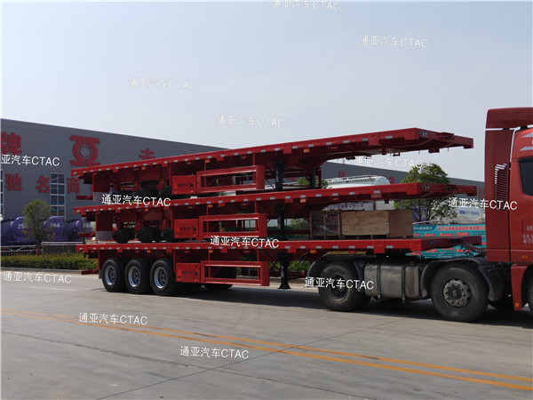 集裝箱平板半掛車可運(yùn)輸集裝箱以及散貨等,一車多用深受客戶喜愛。