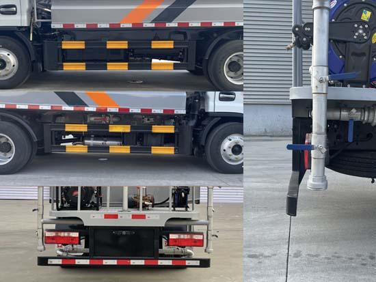該車主要用于道路的清洗養(yǎng)護(hù)作業(yè),主要工作裝置為噴水架,高壓清洗裝置,廂體等;僅選用3308mm軸距,側(cè)面防護(hù)及后下部防護(hù)裝置材料材質(zhì):Q235B,側(cè)面防護(hù)裝置與副車架連接方式:螺栓連接,后下部防護(hù)裝置與車架連接方式:焊接連接,斷面尺寸(高度×寬度):100×50(mm),離地高度:400mm;ABS型號(hào)/廠家:ABS/ASR-12V-4S/4M/襄陽(yáng)東風(fēng)隆誠(chéng)機(jī)械有限責(zé)任公司;選裝后部加裝工作指示燈(僅在工作狀態(tài)下使用),選裝后部加裝霧炮,選裝后部不加裝發(fā)電機(jī)組及水管卷盤; |