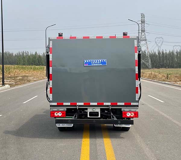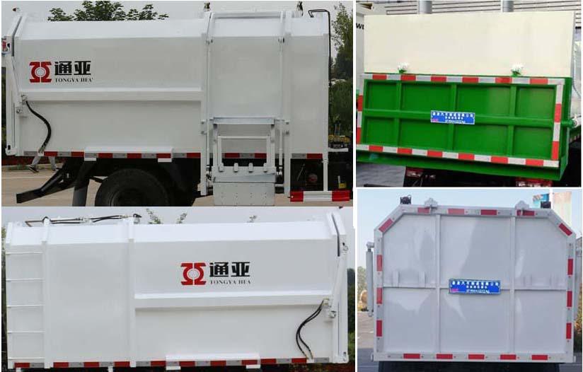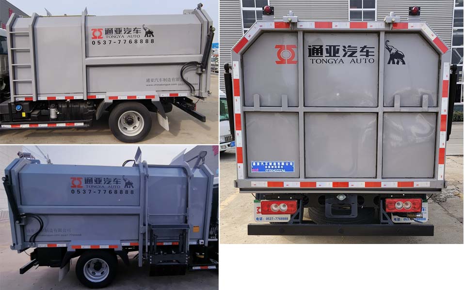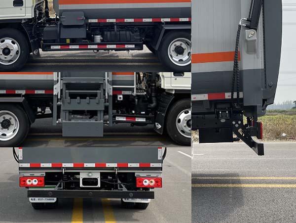 該車(chē)裝備有垃圾箱體及垃圾桶提升傾倒機(jī)構(gòu),用于將垃圾分類(lèi)裝入、轉(zhuǎn)運(yùn)和卸料;僅采用2850mm軸距;側(cè)后防護(hù)裝置材料均為Q235,與車(chē)架連接方式為焊接加螺栓連接,后部防護(hù)裝置的斷面尺寸為100mm×50mm,離地高度為370mm;選裝箱體樣式,選裝不同結(jié)構(gòu)的箱體后部樣式;卸料方式后卸,廂體頂部封閉,不可開(kāi)啟;發(fā)動(dòng)機(jī)Q23-115C60的油耗值為11.4L/100Km,發(fā)動(dòng)機(jī)Q23-115E60的油耗值為11.4L/100Km;ABS系統(tǒng)控制方式為4S/4M,ABS型號(hào)為CM4XL-4S/4M,生產(chǎn)廠家為廣州瑞立科密汽車(chē)電子股份有限公司.選裝ETC車(chē)載裝置.整備質(zhì)量包含備胎、滅火器隨車(chē)工具重量.
