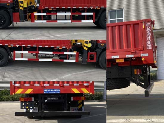 | 其它 | 該車用于貨物的起吊和托運(yùn),專用裝置貨箱和吊機(jī);選裝欄板樣式,選裝后支腿,選裝座椅操作位置及支腿,隨車選裝駕駛室樣式;僅采用5850+1350(mm)軸距;側(cè)、后防護(hù)材料均為:Q235,連接方式均為:螺栓連接,后部防護(hù)截面尺寸(mm):120×80,后部防護(hù)離地高度(mm):480;ABS型號(hào)及生產(chǎn)廠家為:3631010-C2000/東科克諾爾商用車制動(dòng)系統(tǒng)(十堰)有限公司,J ABS/焦作博瑞克控制技術(shù)有限公司;發(fā)動(dòng)機(jī)/油耗值(L/100km)對(duì)應(yīng)關(guān)系為:YCS06270-60/32.4;吊機(jī)型號(hào)/吊機(jī)重量(kg)/最大起升載荷(kg)分別為:TSQ300/5000/12000.安裝有具有衛(wèi)星定位功能的行駛記錄儀,該車型加裝ETC車載裝置。 | ||