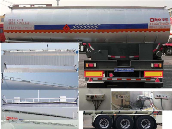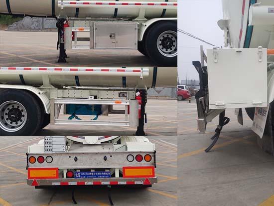 采用適用于牽引危險(xiǎn)品運(yùn)輸半掛車(chē)的牽引車(chē).類(lèi)項(xiàng)號(hào):3,運(yùn)輸危險(xiǎn)貨物車(chē)輛的類(lèi)型為:FL.罐體有效容積:34立方米;該車(chē)加裝保溫層,罐體為鵝頸式,保溫層內(nèi)部罐體外形尺寸為:長(zhǎng)9600mm,前端直徑為:2030mm,后端直徑為:2280mm,當(dāng)保溫層厚度為:50mm,罐體(含保溫層)尺寸為:長(zhǎng)9700mm,前端直徑為:2130mm,后端直徑為:2380mm;當(dāng)保溫層厚度為:80mm,罐體(含保溫層)尺寸為:長(zhǎng)9760mm,前端直徑為:2190mm,后端直徑為:2440mm;當(dāng)保溫層厚度為:100mm,罐體(含保溫層)尺寸為:長(zhǎng)9800mm,前端直徑為:2230mm,后端直徑為:2480mm;選裝保溫層內(nèi)部罐體外形尺寸為:長(zhǎng)9200mm,前端直徑為:2010mm,后端直徑為:2260mm,當(dāng)保溫層厚度為:50mm,罐體(含保溫層)尺寸為:長(zhǎng)9300mm,前端直徑為:2110mm,后端直徑為:2360mm;當(dāng)保溫層厚度為:80mm,罐體(含保溫層)尺寸為:長(zhǎng)度為:9360mm,前端直徑為:2170mm,后端直徑為:2420mm;當(dāng)保溫層厚度為:100mm,罐體(含保溫層)尺寸為:長(zhǎng)度9400mm,前端直徑為:2210mm,后端直徑為:2460mm;選裝號(hào)牌照板安裝位置,選裝后組合燈為圓形樣式,選裝后尾樣式;選裝外蒙皮樣式及有無(wú)繃帶結(jié)構(gòu),選裝走臺(tái)樣式,選裝電氣路連接器固定座安裝位置(中間/左側(cè)/右側(cè)),當(dāng)輪胎型號(hào)為11R22.5 12PR時(shí),輪胎中間加裝雨簾;ABS系統(tǒng)生產(chǎn)廠(chǎng)家:廣州瑞立科密汽車(chē)電子股份有限公司,廣州市西合汽車(chē)電子裝備有限公司,ABS型號(hào):CM2XL-4S/2M,SXH-GQ4S2M-E01;側(cè)面及后下部防護(hù)裝置所有材料材質(zhì):Q235B,側(cè)面及后下部與車(chē)輛連接方式均為:螺栓連接,后部防護(hù)裝置的主要尺寸參數(shù):斷面尺寸(mm):120×68,離地高度:500mm.車(chē)長(zhǎng)/牽引銷(xiāo)到車(chē)輛最前端距離/軸距/后懸(mm)對(duì)應(yīng)關(guān)系為:10200/1400/4830+1310+1310/1350,10200/1250/4980+1310+1310/1350,9800/1300/4530+1310+1310/1350,9800/1150/4680+1310+1310/1350. ![]() ![]() ![]()