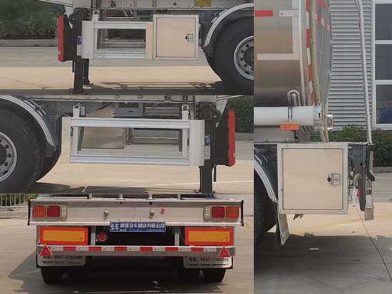 | 該車為非?;愤\(yùn)輸車輛,罐體及車架均為鋁合金材質(zhì),罐體總?cè)萘?37.8立方米,罐體有效容積:36立方米;允許運(yùn)輸介質(zhì)的最大密度為:950千克/立方米,罐體外形尺寸(含封頭)為:長(zhǎng)9900mm,寬2480mm,罐體為鵝頸式,前端高度:1820mm,后端高度:2000mm;選裝走臺(tái)樣式,選裝尾部閥門,選裝前爬梯,選裝接頭護(hù)罩位置;ABS系統(tǒng)生產(chǎn)廠家:廣州瑞立科密汽車電子股份有限公司,廣州市西合汽車電子裝備有限公司,山東梁山德爾福汽車科技有限公司,ABS型號(hào):CM2XL-4S/2M,XH-GQ4S2M-E01,DEF-ABS4S/3M;側(cè)面及后下部防護(hù)裝置所用材料材質(zhì)均為:鋁合金,側(cè)面及后下部防護(hù)裝置與車輛連接方式均為:螺栓連接,后部防護(hù)裝置的主要尺寸參數(shù):斷面尺寸(mm)為120×68,離地高度為:500mm. | |||