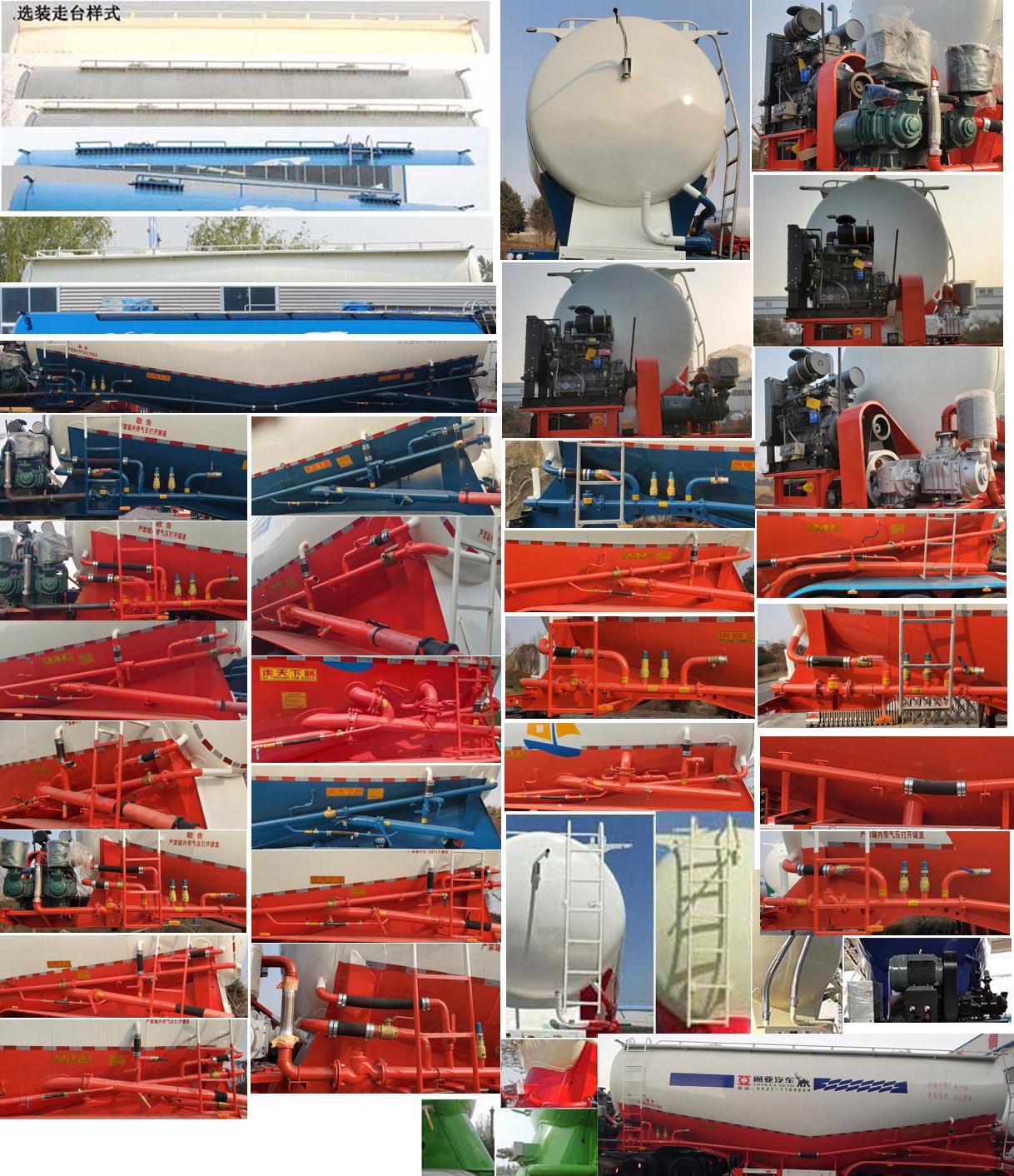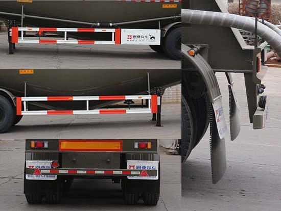 | 其它 | 頂部封閉不可開槽,后部不可開啟;罐體總?cè)萘?63.6立方米,罐體有效容積:60.6立方米,罐體外形尺寸A型:罐體長(含封頭)13000mm,最大截面處寬2550mm,最大截面處高3420mm,前后封頭直徑為2010mm;罐體外形尺寸B型:罐體長(含封頭)12680mm,最大截面處寬2550mm,最大截面處高3420mm,前后封頭直徑為2010mm;選裝雙助吹樣式,選裝支腿連接件樣式,選裝外接氣源樣式,選裝壓力表安裝位置,選裝車輛前部不加裝機(jī)組,選裝前位燈及前回復(fù)反射器所在部件的樣式;選裝后組合燈為矩形樣式,選裝爬梯安裝位置(前部/后部/側(cè)面)及個(gè)數(shù)(一個(gè)/兩個(gè)/三個(gè)),選裝前后封頭處進(jìn)氣管位置和個(gè)數(shù),選裝后部大梁圓孔樣式和非圓孔樣式,選裝大梁后部圓弧樣式,選裝牽引銷后大梁樣式,選裝后部大梁堵板樣式,選裝機(jī)組樣式,選裝部件位置因?yàn)橹圃煺`差可有小變化,選裝尾部標(biāo)志板安裝位置,選裝號(hào)牌板安裝位置;ABS系統(tǒng)生產(chǎn)廠家:廣州瑞立科密汽車電子股份有限公司,梁山順安達(dá)汽車科技有限公司,廣州市西合汽車電子裝備有限公司,山東梁山德爾福汽車科技有限公司,型號(hào):CM2XL-4S/2M,SAD-ABS4S/2M,XH-GQ4S2M-E01,DEF-ABS4S/3M;側(cè)面及后下部防護(hù)裝置所用材料材質(zhì)為:Q235,側(cè)面及后下部防護(hù)裝置與車輛連接方式均為:螺栓連接或焊接,后部防護(hù)裝置的主要尺寸參數(shù):斷面尺寸(mm)為120×68,離地高度為:500mm. | ||