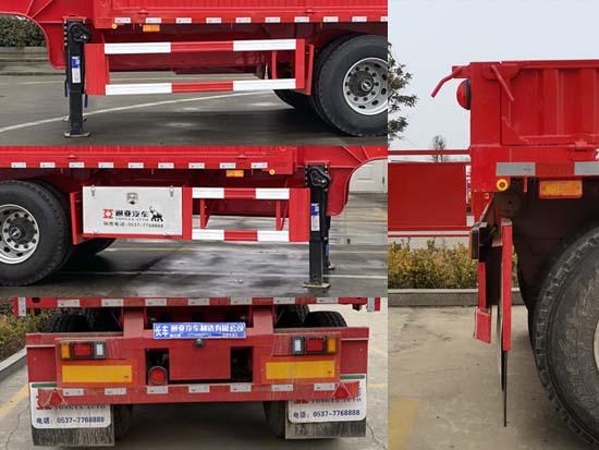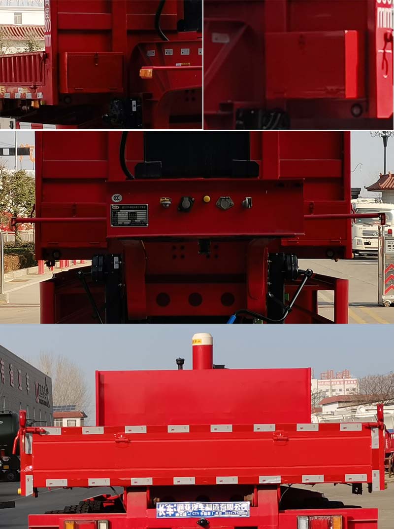 | 其它 | 卸貨方式為:后卸;安裝有手動(dòng)鎖緊機(jī)構(gòu);選裝欄板高度,ABS系統(tǒng)生產(chǎn)廠家:廣州瑞立科密汽車電子股份有限公司,廣州市西合汽車電子裝備有限公司,山東梁山德爾福汽車科技有限公司,型號(hào):CM2XL-4S/2M,XH-GQ4S2M-E01,DEF-ABS 4S/3M;側(cè)面及后下部防護(hù)裝置所用材料材質(zhì)為:Q235B,側(cè)面防護(hù)裝置與車輛連接方式為螺栓連接,后下部防護(hù)裝置與車輛連接方式為焊接,后部防護(hù)裝置的主要尺寸參數(shù):斷面尺寸(mm)為120×60,離地高度為:500mm;車長(zhǎng)/牽引銷到車輛最前端距離/軸距/后懸對(duì)應(yīng)關(guān)系為:9700/520/5800+1310+1310/760,9600/500/5680+1310+1310/800,9500/500/5580+1310+1310/800. | ||