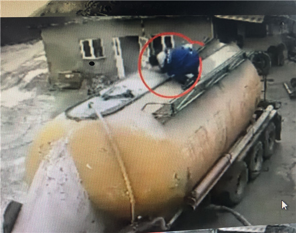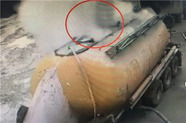 可以看到一輛水泥車正在工作,工作人員突然感覺水泥罐有些不對勁,于是爬到罐頂查看,只見罐頂?shù)姆饪谔幱行┞?,男子順便就擰動罐口,想要看看到底是什么原因,而就在男子左右檢查的時候,水泥罐口突然噴出強大的沖擊力將男子崩飛了出去,狠狠地摔在地上,造成男子當(dāng)場死亡,這驚險的一幕正好被監(jiān)控記錄下來。