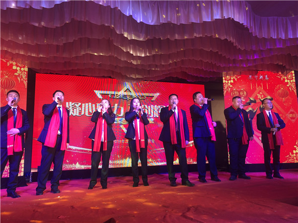 年會(huì)的開(kāi)場(chǎng)由董事長(zhǎng)楊奉欽先生和他的管理團(tuán)隊(duì)為大家獻(xiàn)上了一曲(眾人劃槳開(kāi)大船)。