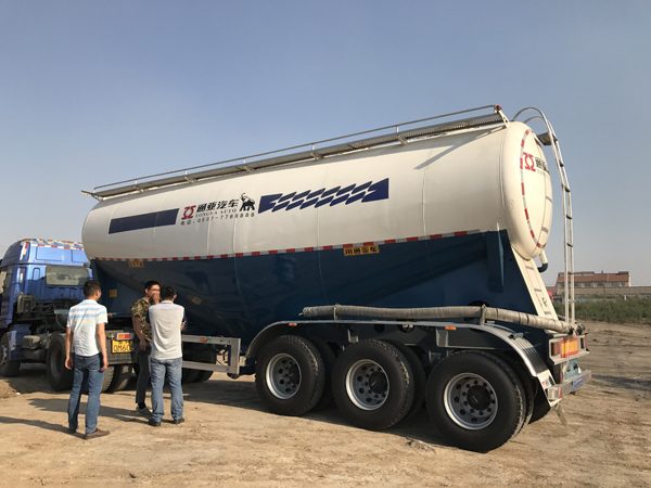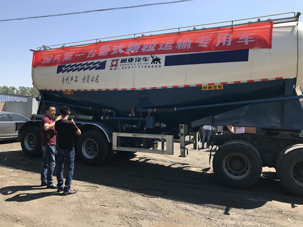 國內(nèi)客戶訂購的臥式顆粒運輸專用車運輸純堿、PTA、PA66等。