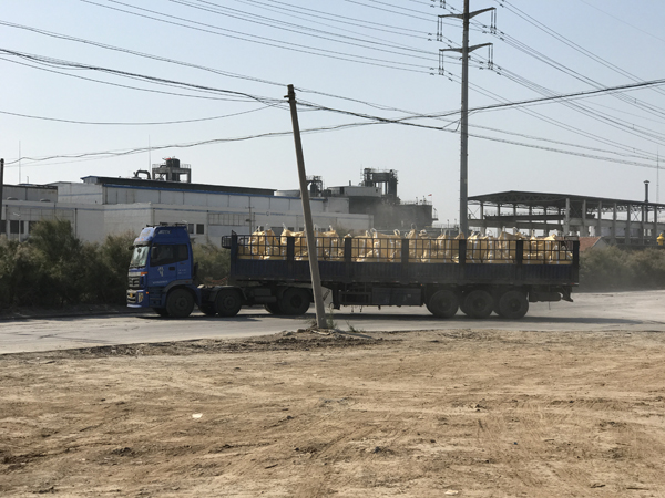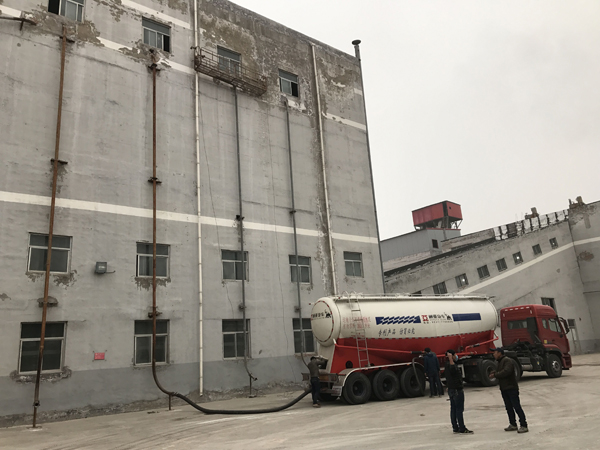在巡展中碰到通亞老客戶在使用欄板半掛車運輸純堿。經(jīng)過一番交談,客戶說用欄板車?yán)纳佟⑽廴敬?、卸料麻煩需要人工,運輸途中還要躲避檢查。對通亞臥式顆粒運輸專用車非常期待,并表示會保持關(guān)注。