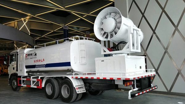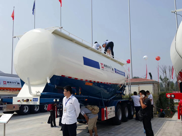 室內(nèi)展館作為精品區(qū)通亞展出鋁合金粉粒物料半掛車(chē)、多功能抑塵車(chē)、臂架泵車(chē)等7個(gè)車(chē)型。