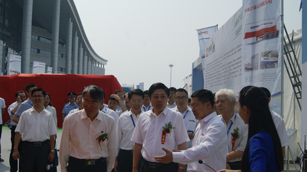 原山東省政協(xié)副主席李殿魁、濟(jì)寧市委書(shū)記王藝華、濟(jì)寧市副市長(zhǎng)張勝明、梁山縣縣委書(shū)記賈治阜等領(lǐng)導(dǎo)蒞臨通亞展區(qū)給予指導(dǎo)并為通亞環(huán)衛(wèi)車(chē)新產(chǎn)品投放市場(chǎng)揭幕。